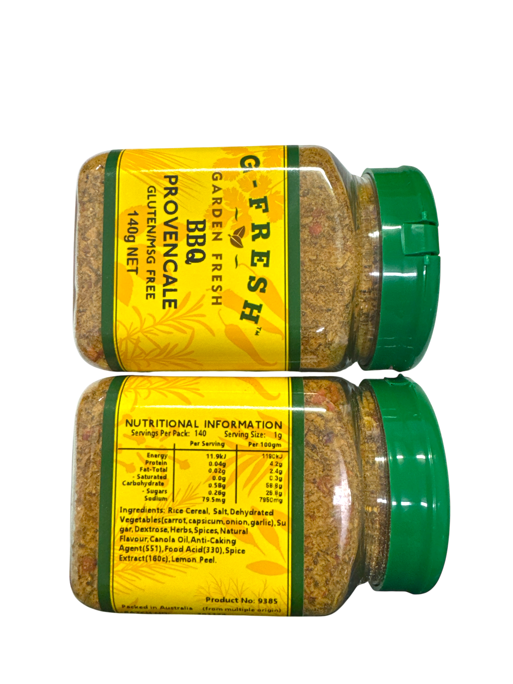 Elevate your cooking with the G-Fresh Gluten Free Seasoning Value Pack – a curated selection of 8 bold, flavour-packed seasonings that are 100% Gluten & MSG free. Whether you're grilling, roasting, or adding a finishing touch, this set has something for every meal and craving. Packaged in a kraft gift box and marked with our Gluten Free Seasonings seal, this set is ideal for food lovers who want flavour without compromise. Gift-Ready Packaging – Beautifully boxed and ideal for gifting to food lovers or keeping your own pantry stocked. - Proudly Packed in Australia – Crafted with quality ingredients.
